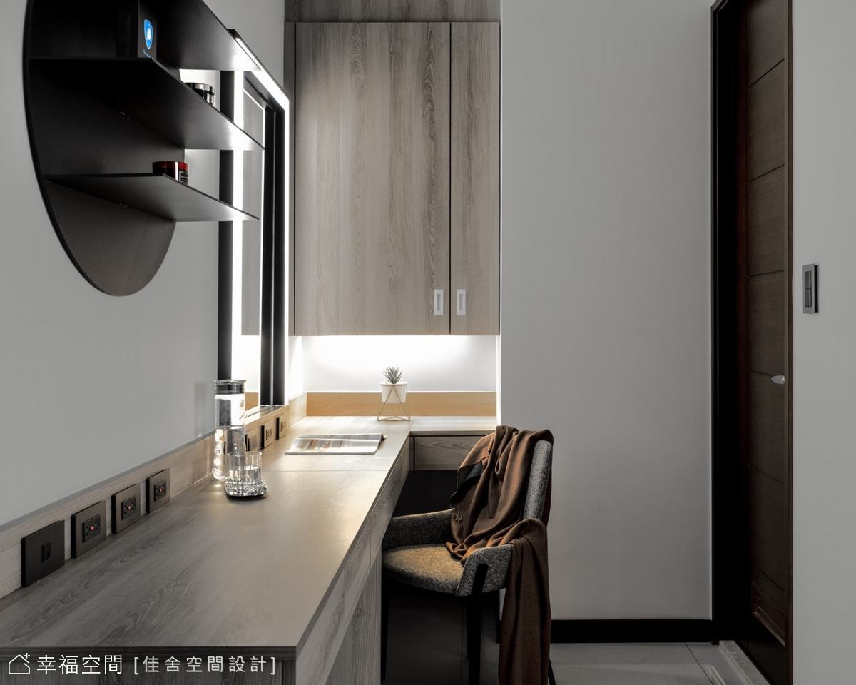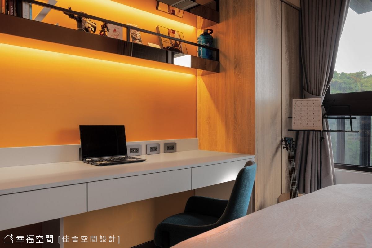主臥空間規劃,除了營造舒眠寢臥氛圍外,書桌兼化妝桌的設計,也讓女主人十分滿意。兩個小男孩,各自都有收藏品與獨特個性,利用鐵件搭配顏色設定,營造屬於自己的生活空間。